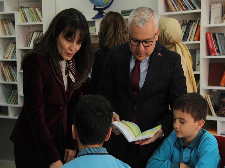 Vali Yılmaz Şimşek, şehidin ailesi ve beraberindekiler açılışın ardından kütüphaneyi gezdi.