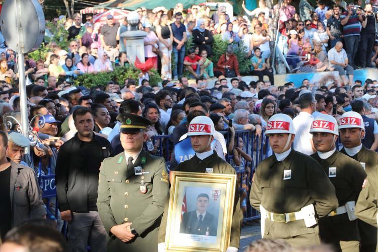 Şehidin babası Ayhan Özek (53), annesi Aysel Özek (48), ağabeyi Ali Özek ve yakınları cenazede taziyeleri kabul etti. Alanyazı Meydanı'nda İl Müftüsü Abdullah Pamuklu'nun kıldırdığı cenaze namazının ardından şehit Özek'in naaşı, askerlerin omzunda top arabasına taşındı. Cenazeye katılan yaklaşık 5 bin kişi, 'Vatan canım sana feda', 'Şehitler ölmez, vatan bölünmez', 'Şehidim sen hakkını helal eyle bize' sloganları attı.