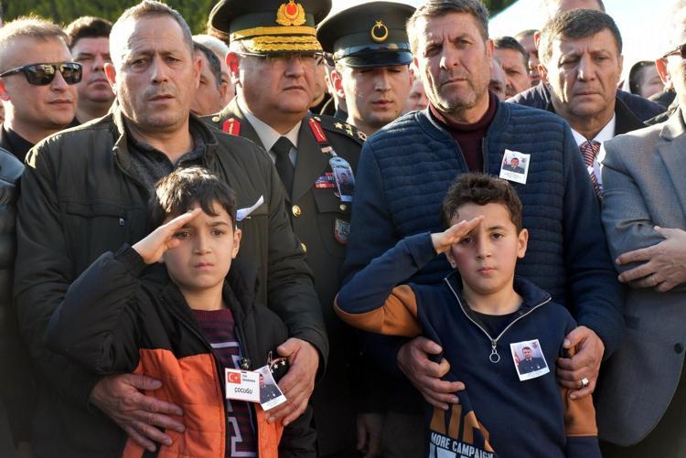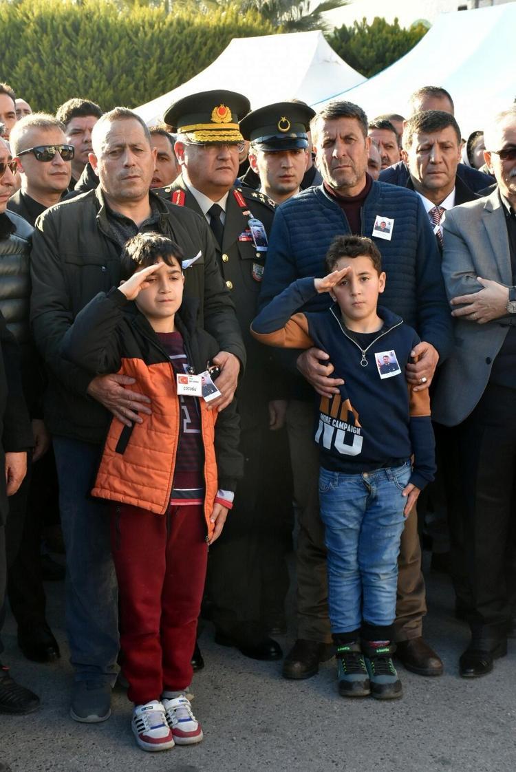 Iğdır'da, 29 Aralık 2022'de araç kazasında yaralanmasının ardından 55 günlük yaşam mücadelesini kaybedip şehit olan Piyade Uzman Çavuş Mesut Taşar (34), İzmir'de son yolculuğuna uğurlandı. Şehidin 4 küçük çocuğu babalarının tabutuna sarılarak gözyaşı dökerken, 'Baba bizi bırakma' diye bağırmaları yürekleri dağladı. Cenazede şehidin çocukları babalarının tabutu taşınırken selam durdu.
