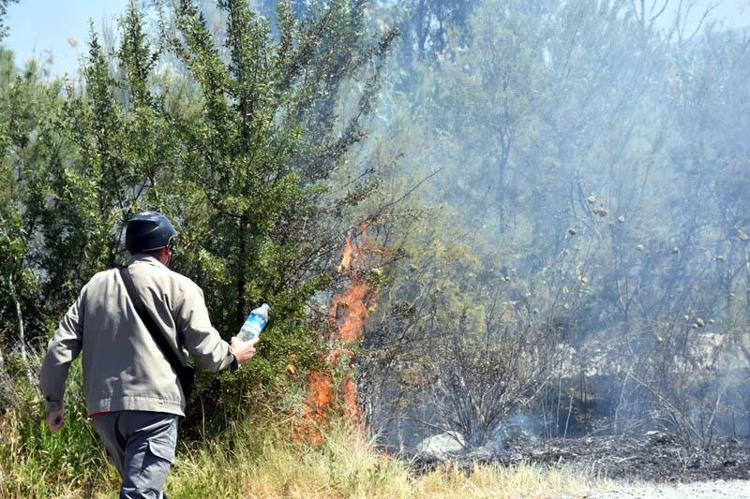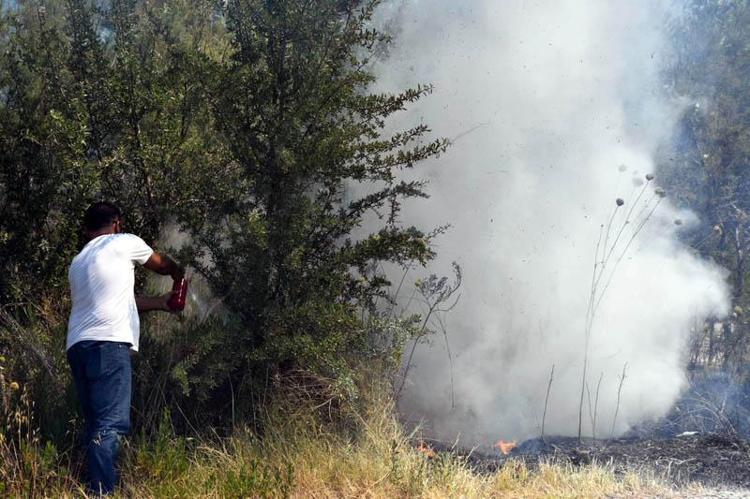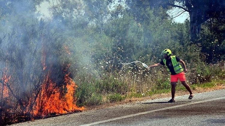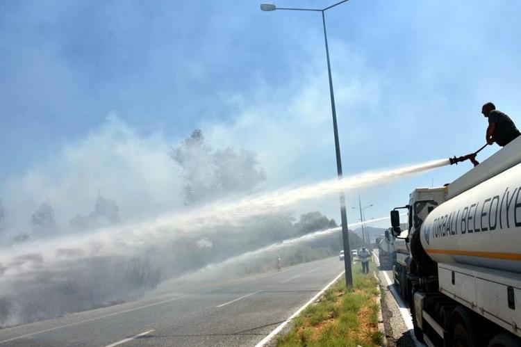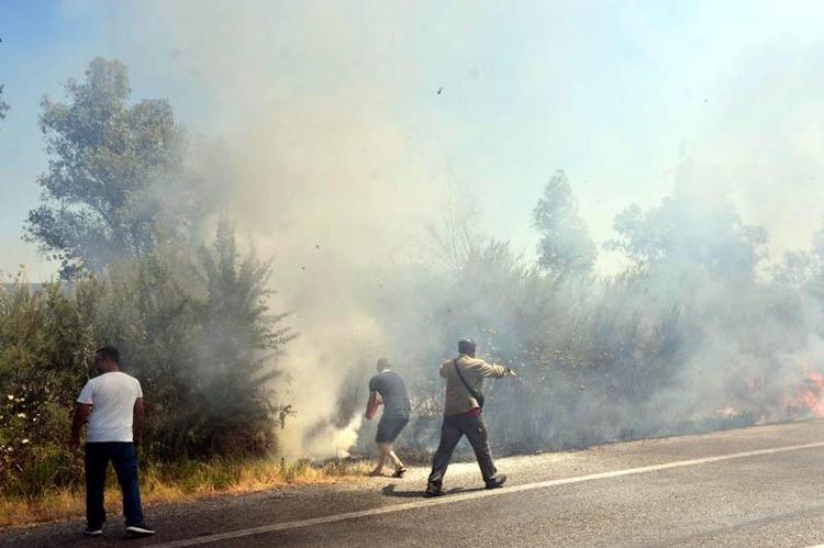 İzmir'in Selçuk ilçesinde yol kenarında otların tutuşması sonucu yangın çıktı. Alevler, yoldan geçen araç sürücülerinin yangın söndürme tüpleri ve içme sularıyla ve dünkü yangın nedeniyle bölgede bulunan belediye ait 3 su tankerinin müdahalesiyle ormana sıçramadan söndürüldü.