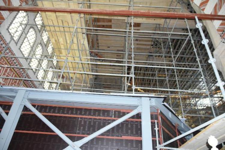 Caminin içerisindeki kubbe ile zemin arasındaki yükseklik 41,5 metre. İkisini topladığımızda yaklaşık 23-24 katlı bir binanın burada şu anda var olduğunu söyleyebiliriz. Camimiz, hem bilim kurulumuzun nezaretinde hem de alanında ehil ustalarımız tarafından şu anda restorasyona devam ediliyor.
