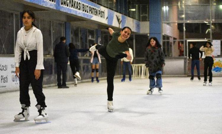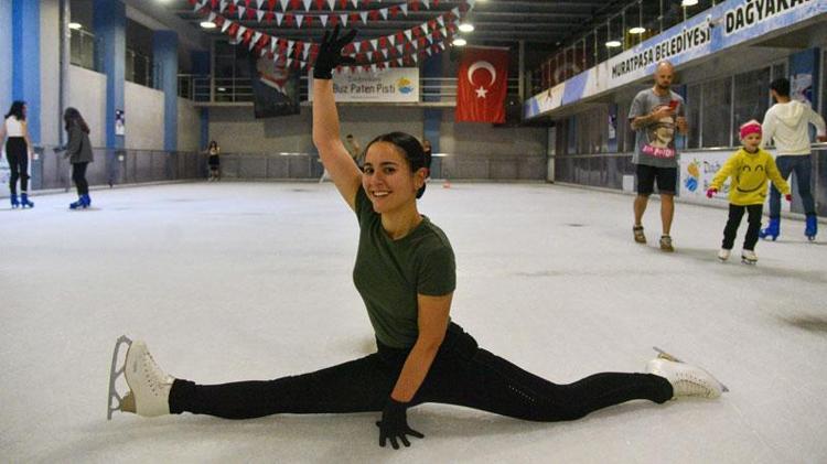 Antalya'da ailelerinin çocuklarını getirdiği, gençlerin paten sürdüğü, eğlence amaçlı buz pistinde antrenman yaparak genç masterler kategorisinde Türkiye üçüncülüğü kazanan Selin Eren (25), 2026'da Almanya'da yapılacak dünya şampiyonasına katılmayı hedefliyor.