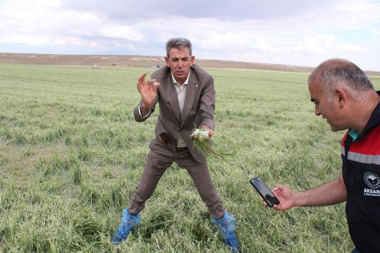 Yine bu bölge de zarar gördü. Aksaray da bu don felaketinden zarar gördü. Sadece don felaketi değil, zaman zaman yaşadığımız kuraklık afeti, sel, hortum, aşırı yağışlar, aşırı rüzgar, tarım sektöründe bitkisel üretime zarar verdi. Pazar günü de öğle saatlerinde ilk dolu yağışı gerçekleşmiş ve 3 bin 500 dekarlık alanı etkilemiş. Özellikle hububat ve patates ürünleri zarar görmüş. İkinci dolu afeti yine pazar günü saat 17.00 sıralarında gerçekleşmiş.