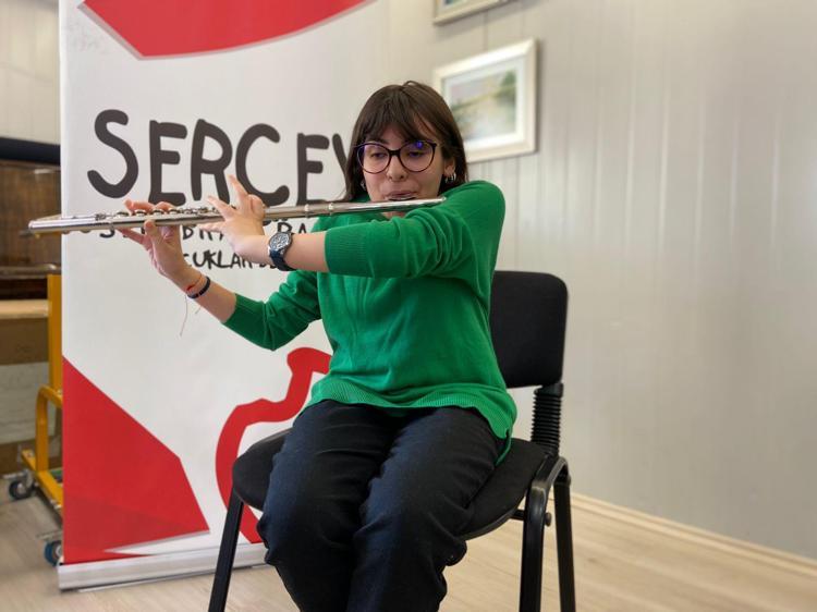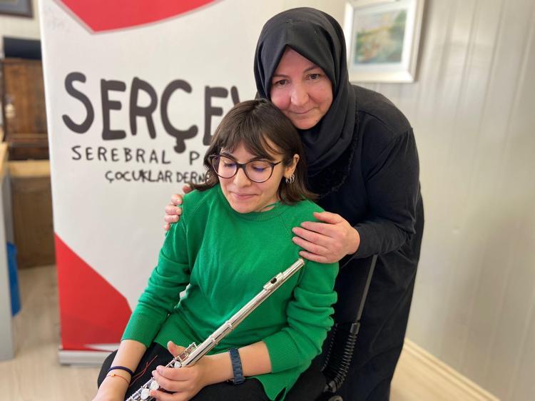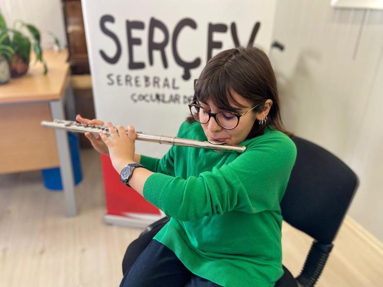 Doğuştan serebral palsi bozukluğuna sahip olan; çene, boyun kaslarını kullanamayan Sudenur Canmaya (17) müzik öğretmeninin yönlendirmesiyle 8 yıldır yan flüt ve piyano çalarken, Serebral Palsili Çocuklar Derneği’nin (SERÇEV) korosunda da görev yapıyor.