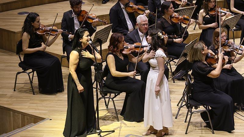 Savaşlara ağıt niteliğinde hazırlanan 'Sesler ve Küller' adlı eserin sahne kantatında annesi Hülya Kazan (52) ile aynı sahneyi paylaşan Ada Reyhan Günay (13), "Parçaya çalışırken annem, 'iyice duyguya gir' dediği için ben birazcık Gazze'deki çocuklara falan baktım. Artık her çalıştığımızda böyle ağlaya ağlaya çalıştık" dedi.