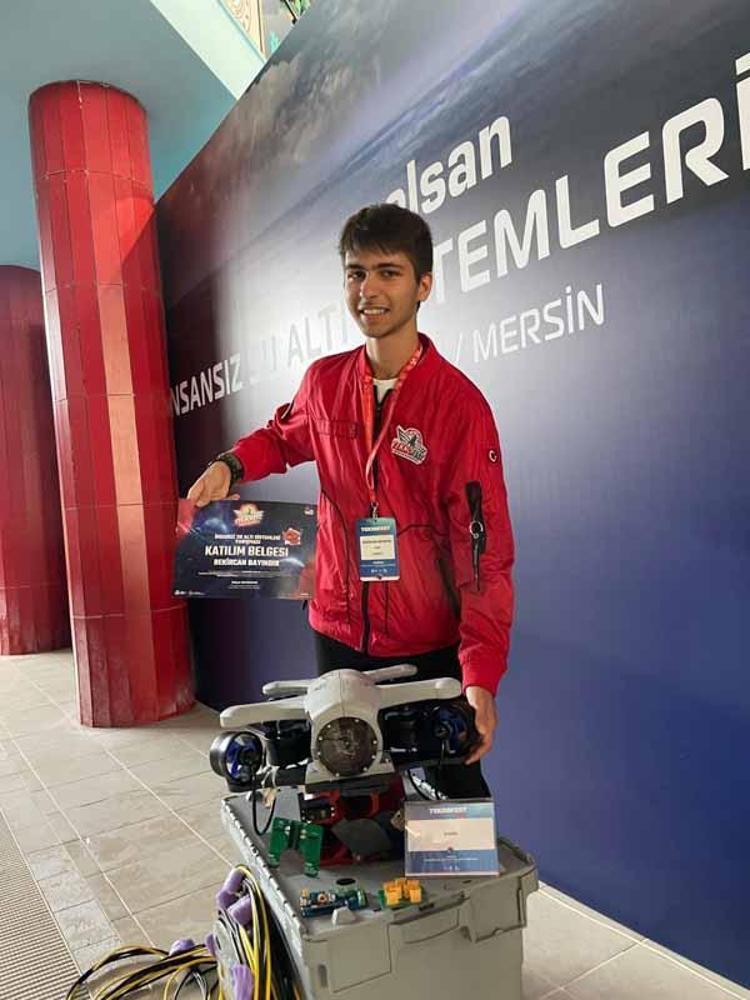 Bekircan Bayındır, üretme isteğinin çok fazla olduğunu ve BAYKAR Yönetim Kurulu Başkanı Selçuk Bayraktar'ı örnek aldığını söyleyerek, "Bayraktar TB2, TB3 ve Anka-3 gibi uçakları çok beğeniyordum. TEKNOFEST'te su altı kategorisinde, su altında çeşitli görevleri tamamlayabilen, görüntü işleyebilen bir araç ürettik. Biz bu aracı geliştirdik, modüller entegre ettik. Balık gözü kamera ve derin gezen motorları kendimiz ürettik. İlk aracımı tasarladığımda düz bir gövdeydi ve hidrodinamiği kötüydü. Bunu hayal ederek geliştirdim. 'Tuzlu suda mı saf suda mı nasıl dengede kalır?' diye düşündüm. Bu düşünceleri programlara dökerek test ettim. Hayal etmek kadar, bunu gerçeğe dönüştürmek de önemli. Su altı aracımızı dron olarak tanımlayabiliriz. Parçaları ürettikten sonra gövdeye yerleştirmek, hazneleri dengelemek zordu. Suyun giriş-çıkışını hesaba katmamız gerekiyordu. Yarışmaya ilk katıldığımızda 'insansız sualtı araçları' kategorisinde finalist olduk. Sonraki sene 'SUİJİN' takımıyla hem insansız hava aracı hem su altı projesiyle katıldık. Su altı projemiz finalist oldu ve en iyi takım ödülünü aldık. İlk başarısızlıklarımız bizi yıldırmadı, aksine motive etti. TEKNOFEST gibi organizasyonlar gençleri geliştiriyor. Daha iyi bir gelecek, daha iyi bir Türkiye için bu projeler çok değerli. Benim örneğim Selçuk Bayraktar oldu" ifadelerini kullandı.