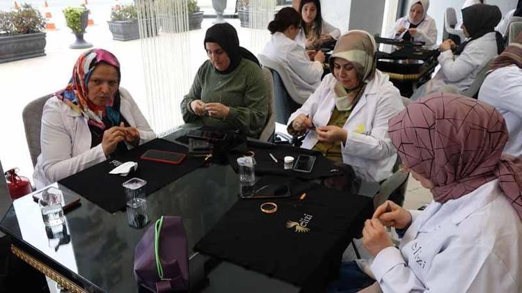 Şevval Sam, Trabzon hasırını işleyen kadınlara eşlik etti