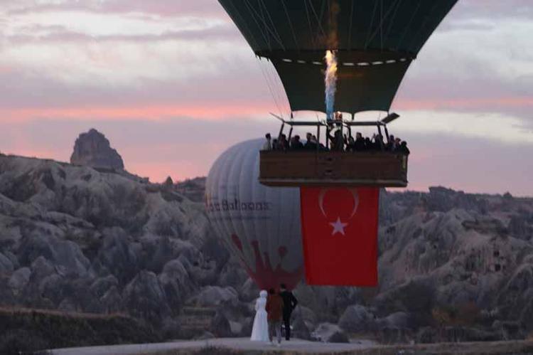 Kapadokya'da sabahın erken saatlerinde havalanan sıcak hava balonlarından bazılarının sepetlerine, Türkiye Cumhuriyeti'nin kurucusu Gazi Mustafa Kemal Atatürk'ün posterleri ve Türk bayrakları asıldı. Bölgeyi ziyaret eden yerli ve yabancı turistler, sıcak hava balonları ile fotoğraf çektirdi. Yaklaşık 1 saat Kapadokya semalarında uçan sıcak hava balonları, güzel görüntüler oluşturdu.