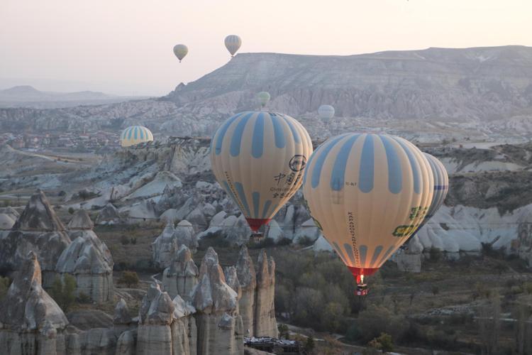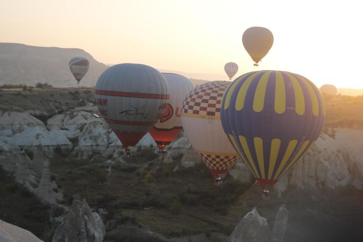 Bölgeyi ziyaret eden yerli ve yabancı turistler, sıcak hava balonlarıyla fotoğraf çektirdi. Yaklaşık 1 saat Kapadokya semalarında uçan sıcak hava balonları, güzel görüntüler oluşturdu.