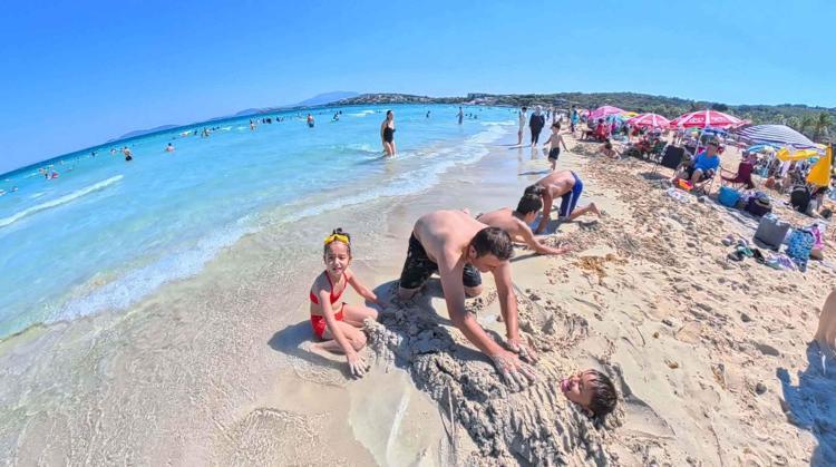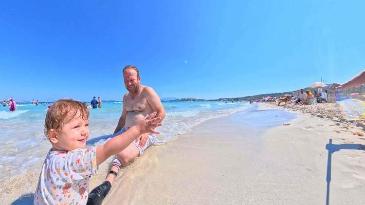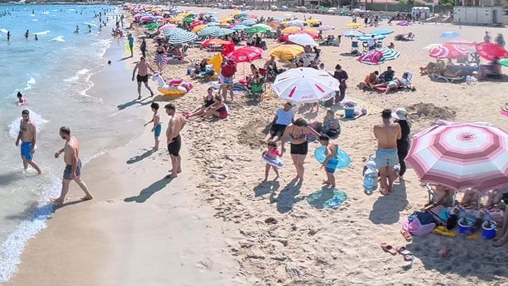 Plajlarda kimileri denize girerek serinlerken, kimileri şezlonglara uzanıp güneşlendi, kimileri de kumda çocuklarıyla oynadı.