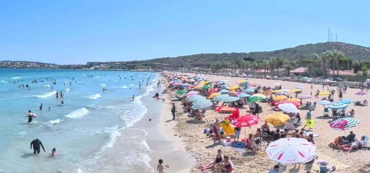 Sıcak hava bunaltı; Çeşme'de plajlar doldu