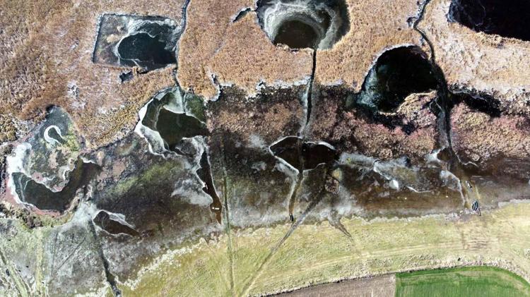 Hava sıcaklıklarının mevsim normallerinin altında hissedildiği Edirne’de, gece saatlerinde soğuk etkisini arttırdı. Sıcaklıkların en düşük eksi 1, en yüksek eksi 8 derece hissedildiği kentte, merkeze bağlı Büyükdöllük ve Değirmenyeni köyleri arasında bulunan, halkın ‘Göl Baba’ olarak adlandırdığı göletin yüzeyi buzla kaplandı. Sabah saatlerinde gölete gelenler, manzara karşısında şaşkınlık yaşadıklarını belirtti. Bazı balıkçı kayıkları da buz tutan su yüzeyinde mahsur kaldı. Öte yandan, Tunca Nehri’nin Değirmenyeni köyünden geçen kısmında da su yüzeyinin buz tuttuğu görüldü.