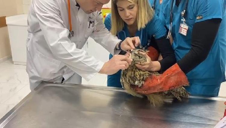 Siirt’te yaralı bulunan puhu, tedaviye alındı