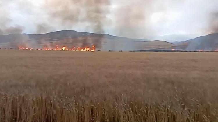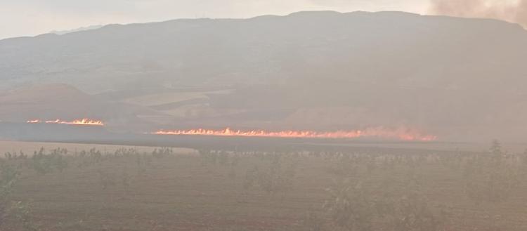 YILDIRIM DÜŞEN TARLADA 200 DÖNÜM YANDI