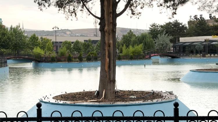 Kentte öğleden sonra etkili olan gök gürültülü sağanak sırasında, Bahçelievler Mahallesi Kızlar Tepesi Parkı'nda çam ağacına yıldırım isabet etti.