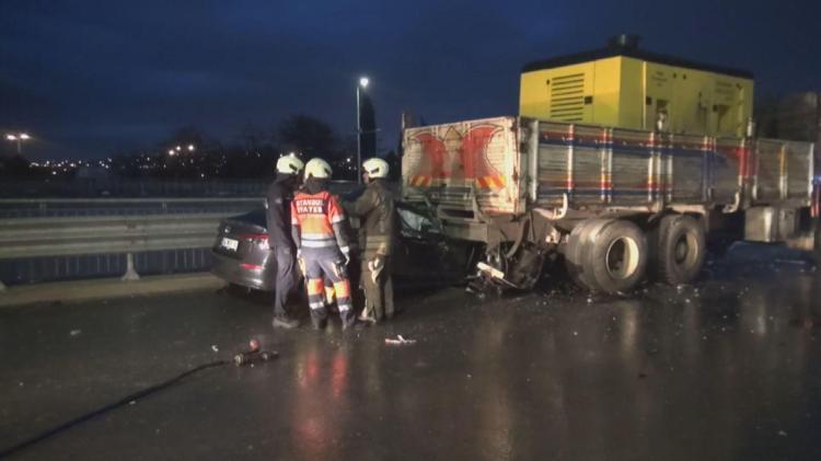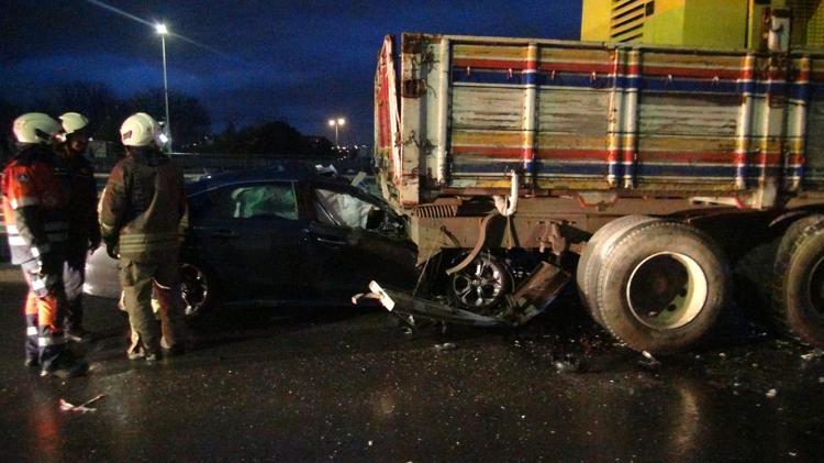 Silivri'de seyir halindeyken tekeri kopan otomobil kamyona çarptı; sürücü yaralandı