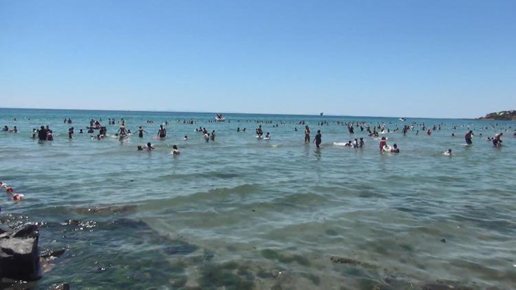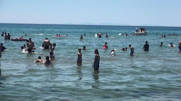 Silivri'de sıcak havadan bunalanlar, Kurban Bayramı'nın ikinci gününde sahillere akın etti. Denizin ve güneşin tadını çıkaran tatilciler Mimarsinan Mahallesindeki Kumluk Plajı'nda yoğunluk oluşmasına neden oldu.