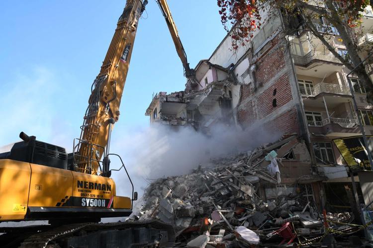 Balıkesir'in Sındırgı ilçesinde 27 Ekim'de meydana gelen 6.1 büyüklüğündeki deprem sonrası hasar gören yüksek katlı binaların, risk oluşturan bölümleri için de traşlama ve kat düşürme çalışması başlatıldı.