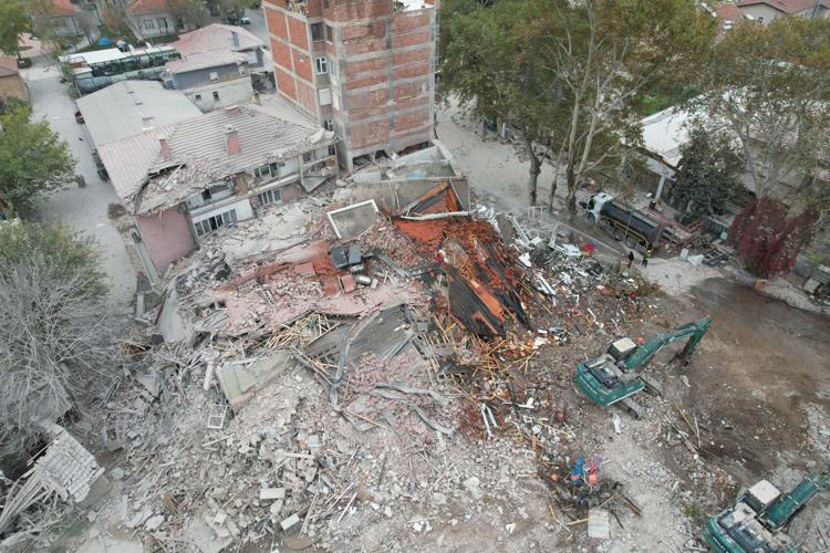 İlçede deprem fırtınası sürerken, aynı zamanda ağır hasarlı binalar için başlatılan yıkım işlemleri devam ediyor. AFAD koordinesinde yürütülen yıkım ve enkaz kaldırma çalışmalarına, Balıkesir Büyükşehir Belediyesi ekipleri de destek veriyor. Öte yandan hasar gören yüksek katlı binaların, risk oluşturan bölümler için traşlaşma ve kat düşürme çalışması başlatıldı.