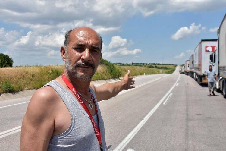 Biz yurt dışına çalışıyoruz. 1 hafta yatan maldan ne olacak? Sıcaktan etkileniyor. Sıra 40-50 kilometreye dayanmış. Dolabımızda ekmeğimiz varsa yiyoruz. Yolda lokanta yok. Hamzabeyli'ye vardığımızda da orası pahalı. Arabamızda su varsa kafamızı yıkıyoruz. Devletimiz sıra durumuna el atsa ve park yapsa daha iyi olur.