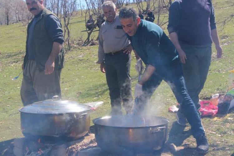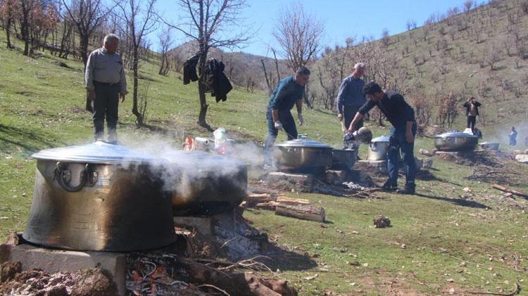 Yüzlerce yıldır mart ayının ikinci haftasında sürdürdükleri etkinliği bu yıl yoğun kar yağışından dolayı mart ayının sonunda düzenleyen Şırnaklılar, büyük tencerelerde yaptıkları yemekleri yüzlerce metre uzunluğundaki sofraya dizdi.