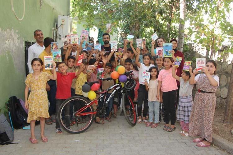 Bisikletini hediye ettik. Projemiz kapsamında en çok kitap okuyan çocuğumuzu hem spora hem de kitap okumaya teşvik etmek için çeşitli hediyelerimiz olacak. Bağışçılarımız sayesinde çocuklarımızı hem kitap okumaya hem de spor yapmaya teşvik ediyoruz.
