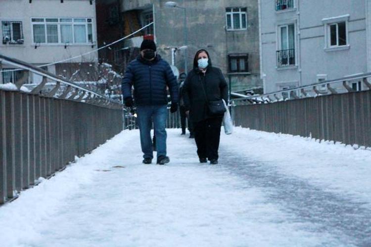 Şişli'de sabah işe gitmek isteyenler buzlu sokaklarda yürümekte güçlük çekti.