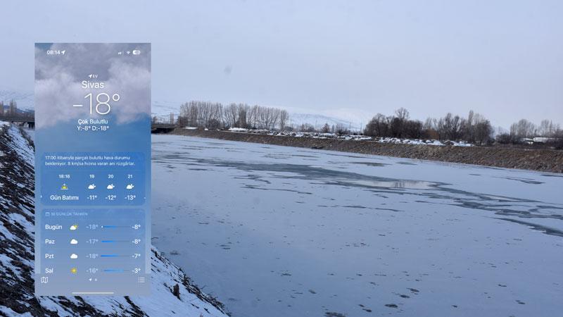 Sivas'ta soğuk hava dalgası sürerken, kent merkezinde sıcaklık eksi 18 derece olarak ölçüldü. Kızılırmak Nehri'nin kent merkezinden geçen kısımlarının büyük bölümü buz tuttu.
