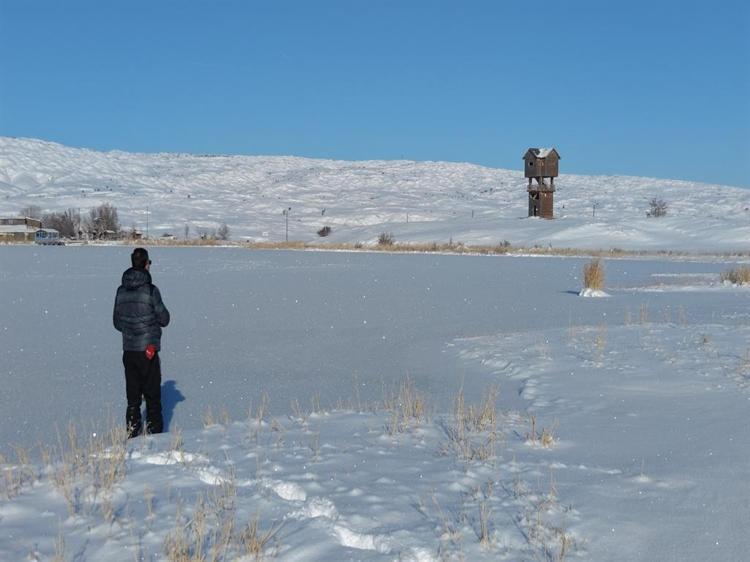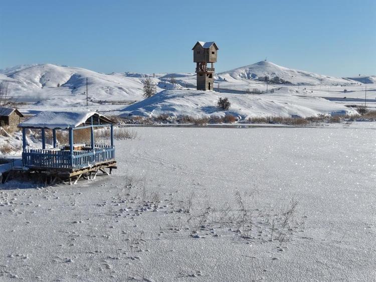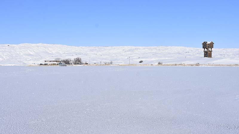 Sivas'ta etkili olan soğuk hava ve kar yağışı nedeniyle kentin en büyük gölü Tödürge, buz tuttu.