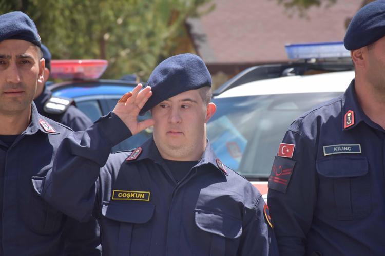 Engelliler, asker selamı vermeyi, 'rahat' ve 'hazır ol' gibi komutları öğrendi. Eğitimlerin ardından kışlada engelliler için yemin töreni düzenlendi. Programa Vali Yardımcısı İhsan Maskar, İl Jandarma Komutanı Jandarma Kıdemli Albay Adem Taşkın, Belediye Başkan Yardımcısı Esra Meran Uslu, il protokolü ile diğer davetliler katıldı. Saygı duruşunda bulunulup, İstiklal Marşı'nın okunmasıyla engelli gençler, ellerini Türk bayrağı ve silahların üstüne koyup ant içti. Vali Yardımcısı Maskar, engellilere katılım belgesi verdi.
