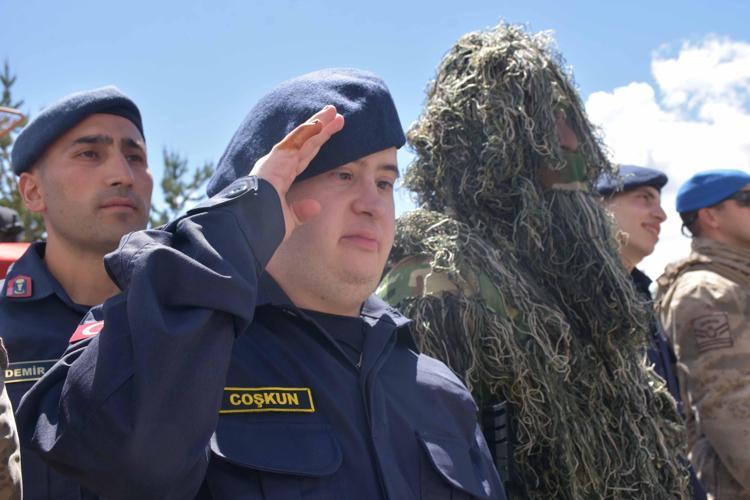 Engelli derneklerinin girişimleri ile İl Jandarma Komutanlığı'na gelen 9 engelli, askeri bot ve kamuflajlarını giydikten sonra eğitime alındı. Kışlada vatani görevini yapan askerler, burada komutanlarının gözetiminde engelli bireylere eşlik etti.