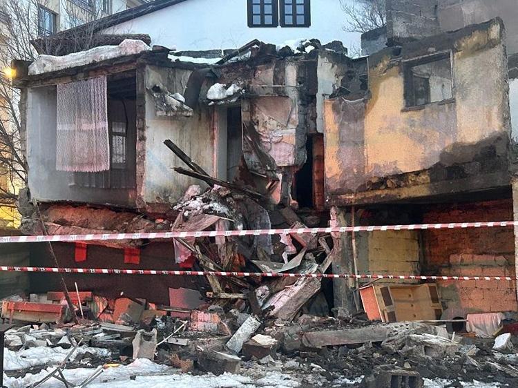 2 yıldır boş durumdaki 2 katlı metruk bina, henüz bilinmeyen bir nedenle kısmen çöktü.