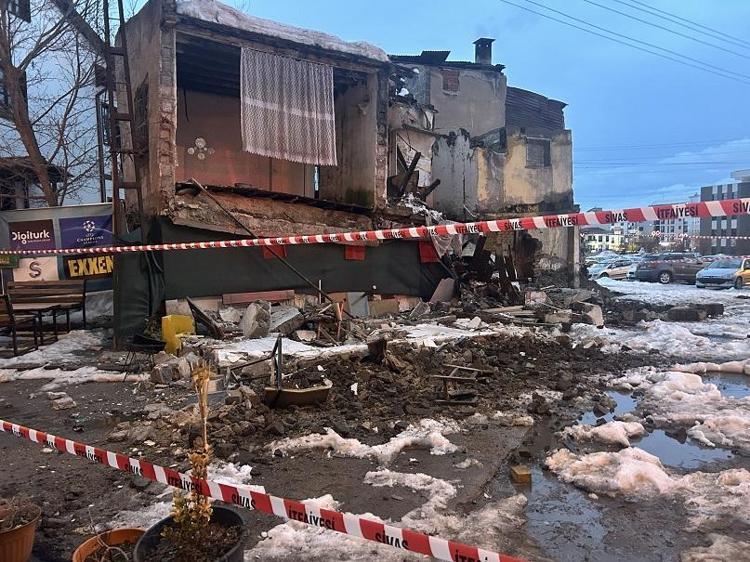 Sivas'ta 2 yıldır boş durumda bulunan 2 katlı metruk bina kısmen çöktü.