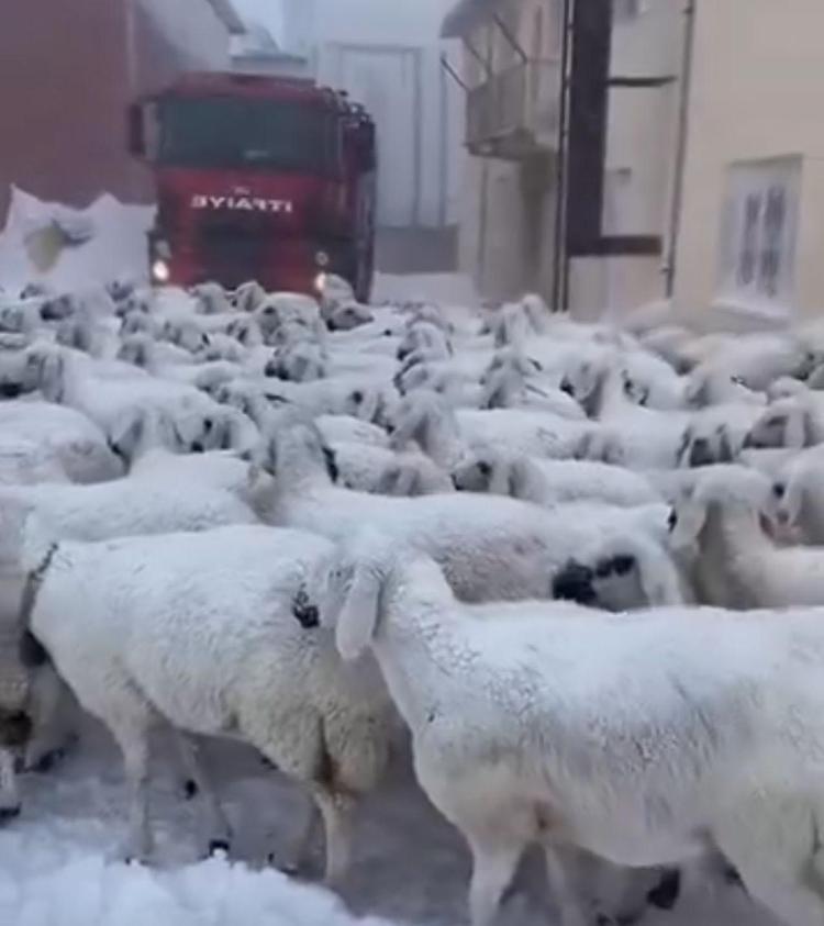 Sivas'ın Altınyayla ilçesi, Deliktaş beldesi Serinyayla Mahallesi'nde yaşayan Beyzade Özkan’a ait 650 koyun çoban ile birlikte yoğun kar yağışı ve tipi nedeniyle arazide mahsur kaldı. Çoban ve sürü köye dönmeyince Özkan durumu belediye ekiplerine haber vererek yardım istedi. Belediye ekipleri iş makineleriyle birlikte çobanı ve sürüyü kurtarma çalışması başlattı. Yaklaşık 4 saat süren çalışmanın ardından 650 koyunun bulunduğu sürü yolun açılmasıyla kurtarıldı. Koyunlar belediyeye ait garaja konuldu. (DHA)