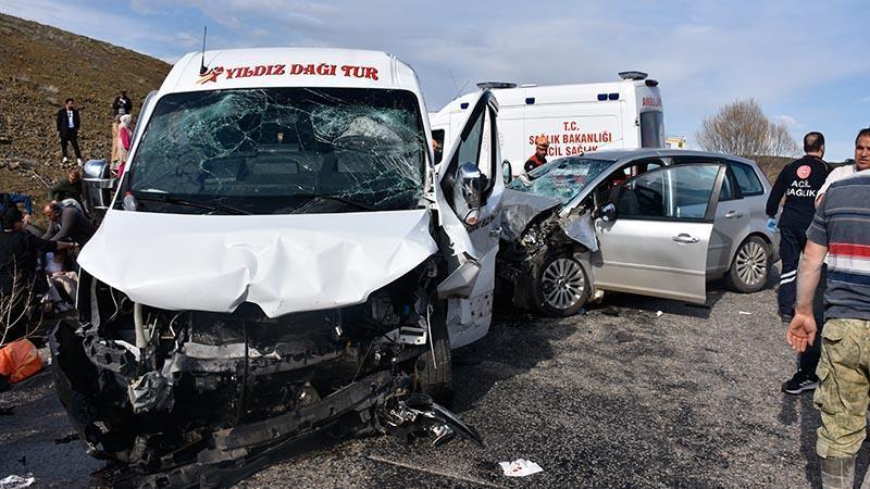 Sivas'ta minibüs ile otomobil çarpıştı; 2 ölü, 16 yaralı