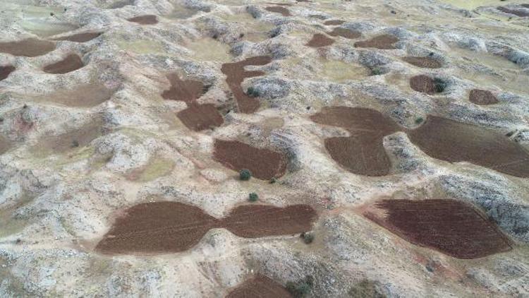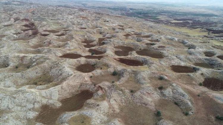 'ZAMANLA TARIM SAHASINA DÖNÜŞMÜŞ'Bölge genelinin tahıl tarımına uygun olduğunu anlatan Dr. Kartal, "Bu kayaçlar, bir süre sonra kırmızı toprak olur. Sivas, Çankırı ve Ankara dolaylarında bu kayaçlar, dolinler içerisinde eriyerek, çok fazla birikmiş toprak unsurları meydana getirir. Bu unsurları, insanlar tarımsal faaliyetlerinde kullanabiliyor. Buradaki obruklardaki tarlaları halk bilinçli olarak ekmiyor. Çiftçi 'Buralar verimli midir' diye düşünmüyor. Sadece burası tahıl tarımına uygun sahalardır. Bu yüzden insanlar, tahıl tarımını dededen ya da babadan bir şekilde deneyimlemiş ve bu şekilde devam etmiş. Bu şekilde tarım sahasına dönüşmüş. Bunun dışında burası, jips adını verdiğimiz kayacın çözülmesiyle oluşmuş, çözülme dolinleri olarak biliniyor. Bunlar da kendi içerisinde irili, ufaklıdır. Geniş ya da küçük parseller içerisinde insanlar, burada tarımını yapabiliyor" diye konuştu.