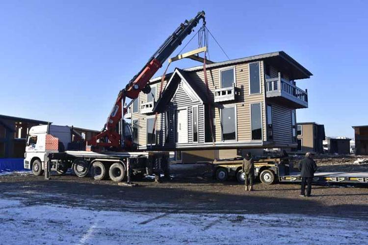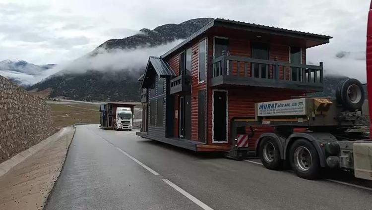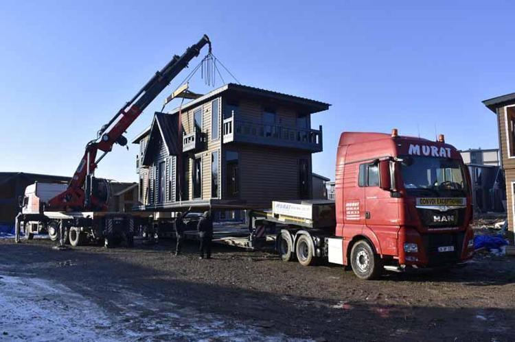 Rusya'dan getirilen Sibirya çamlarından elde edilen ahşaptan yapılan evler, müşterilerin isteğine ve kullanacağı yere göre ebatlandırılıyor. Yapımı tamamlanan evler ise TIR'lar ile gideceği bölgeye naklediliyor. Taşınma ve köprü geçişlerinde problem yaşanmaması için gideceği güzergahtaki yolların genişlik hesapları yapılarak üretilen evler, nakliye sırasındaki görüntüsüyle meraklıların da dikkatini çekiyor. Şimdilerde Bulgaristan'dan da sipariş alan evler, binlerce kilometreyi bulan mesafeleri TIR üstünde taşınarak gidiyor.