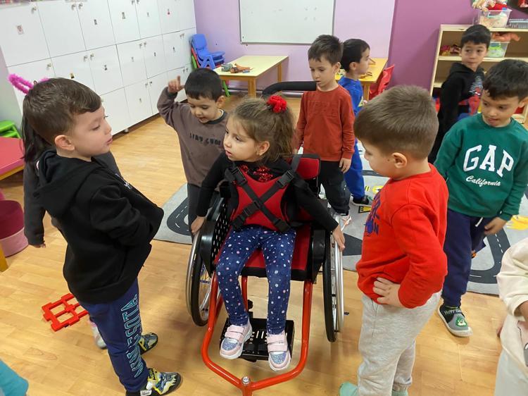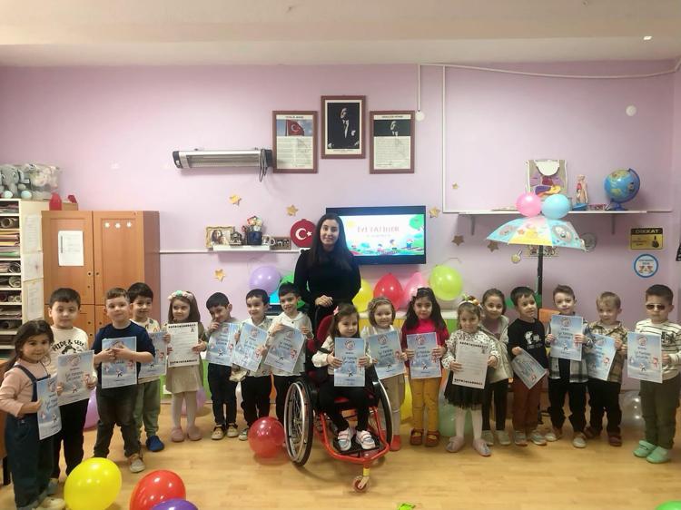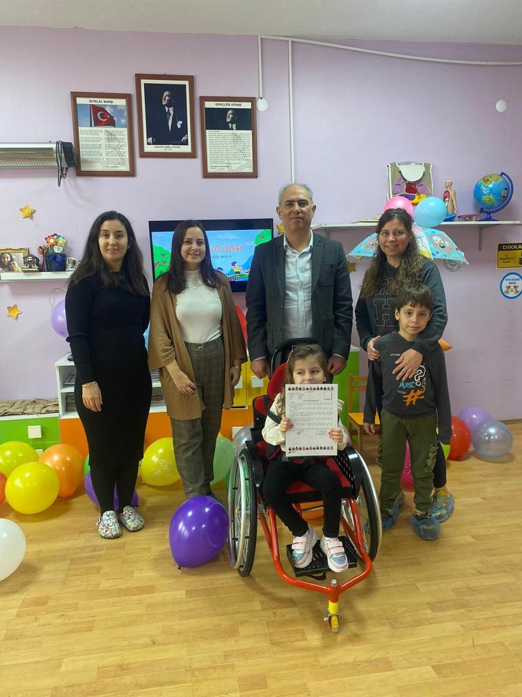 Öğretmenlerinin desteğiyle tekerlekli sandalye aracılığıyla derslere dahil olan minik Defne, öğrenim gördüğü Müzekke Susamcıoğlu Anaokulu’nda karnesini aldı. Küçük Defne'nin sevinci gözlerinden okundu.