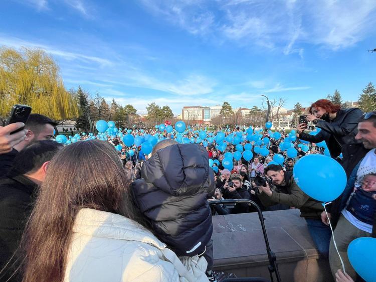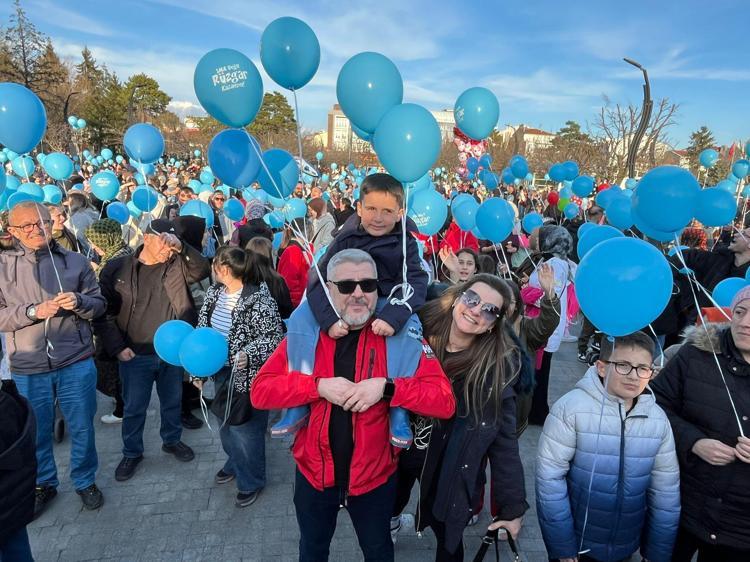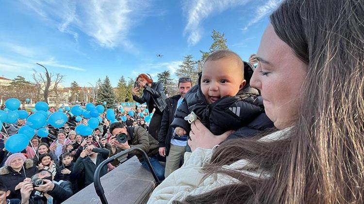 SMA Tip-2 hastası Rüzgar bebek için yüzlerce mavi balon gökyüzüne bırakıldı