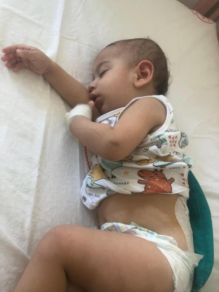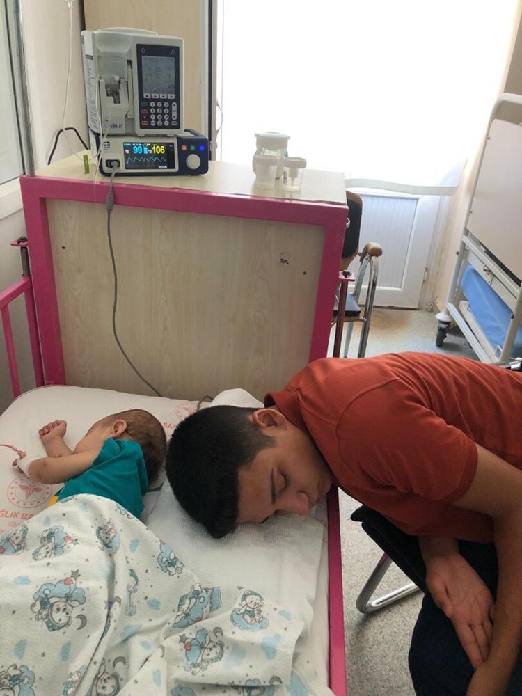 Geçen haftayı hastanede geçirdik. Enfeksiyonu var, hırıltısı ve ateşi oldu. SMA hastaları balgamı ya da tükürüğünü dışarı çıkaramadığı için ya boğazına kaçıyor ya akciğerine iniyor. Oğlumuz hastanelerden, iğnelerden yoruldu" diye konuştu.