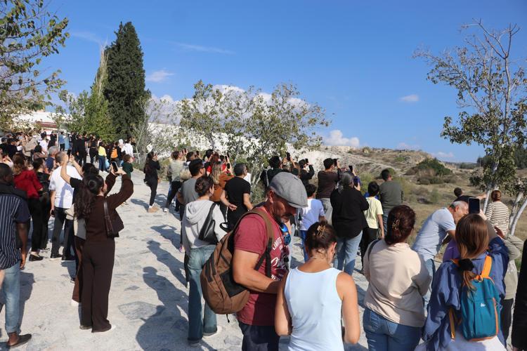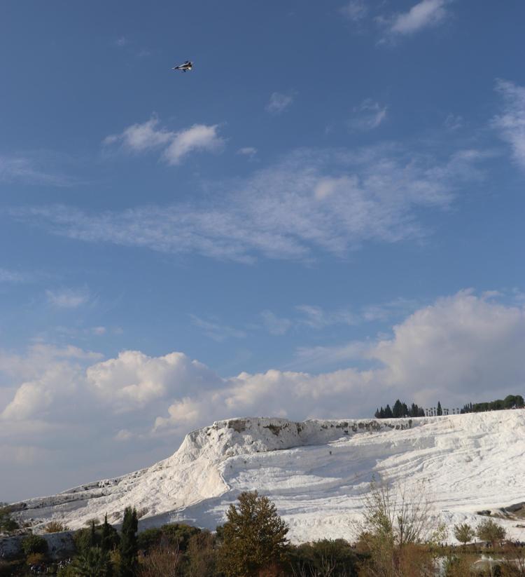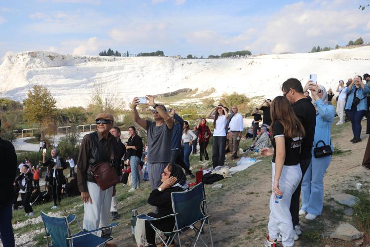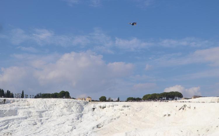 Pamukkale'ye ziyarete gelenler de cep telefonlarıyla SOLOTÜRK'ün gösterisini görüntüledi.