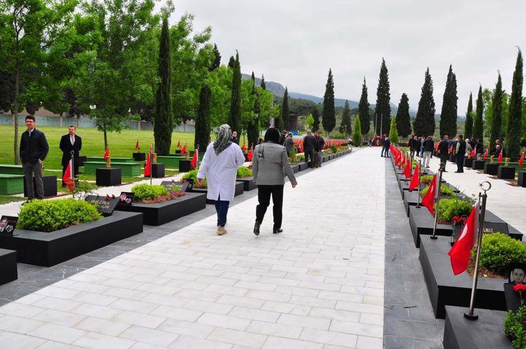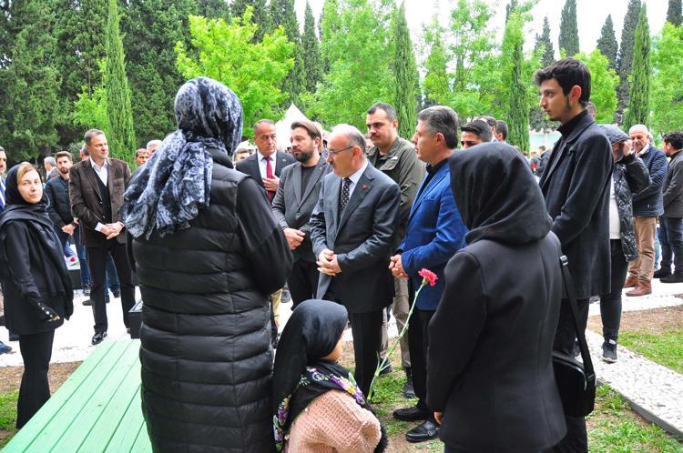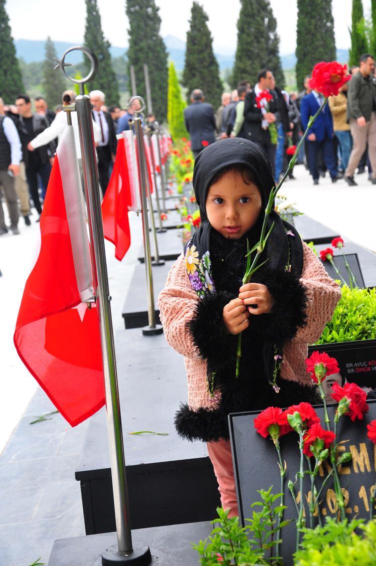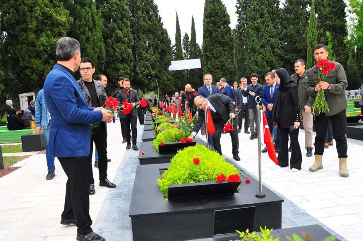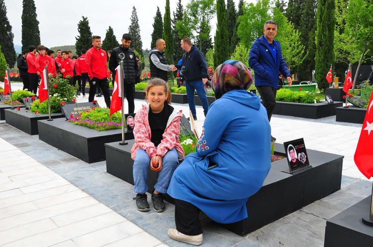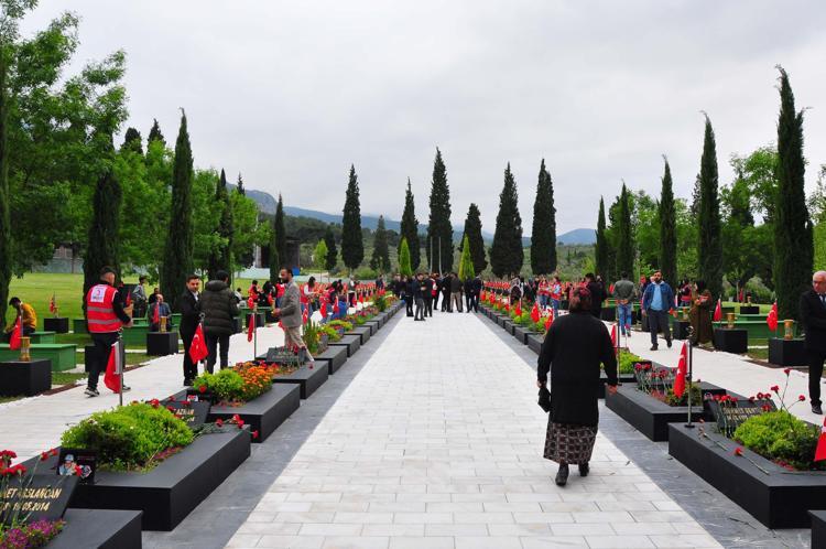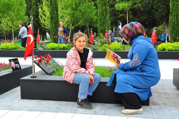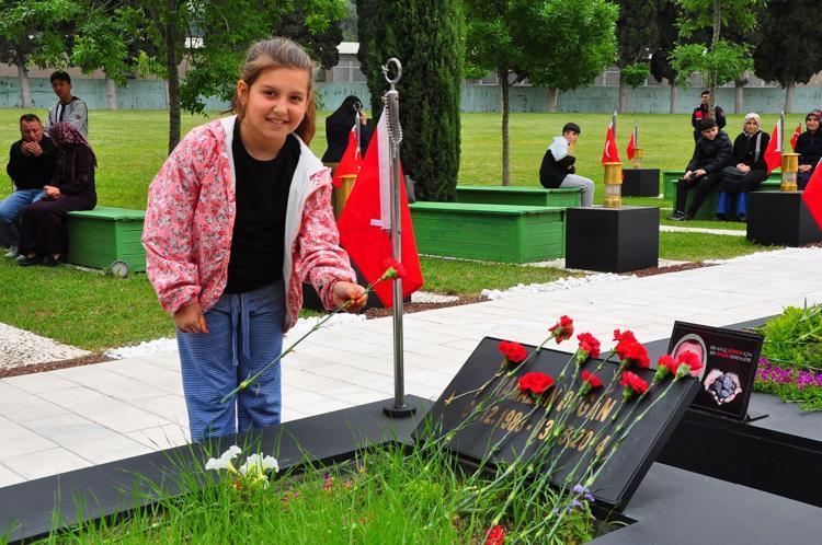 Manisa Valisi Yaşar Karadeniz, beraberindeki heyet ile şehitliği ziyaret ederek karanfil bırakıp, dua etti. 53 günlükken babası Ramazan Doğan'ı kaybeden Ebrar Doğan (10) da ailesiyle birlikte şehitliğe geldi.
