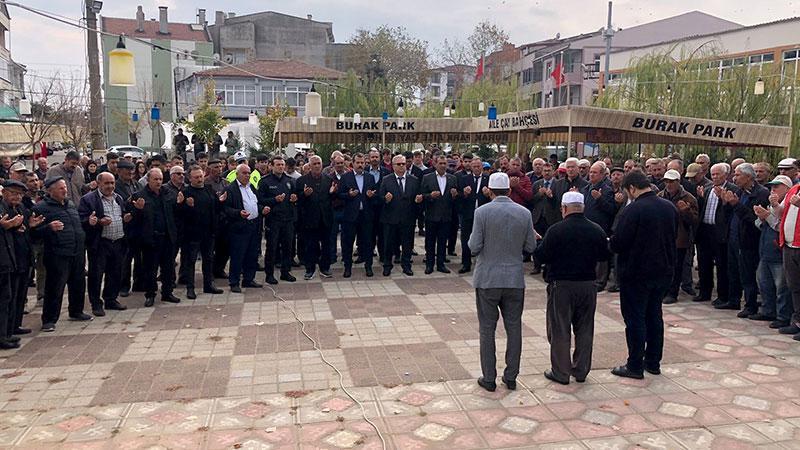 Yağmur duasına Kaymakam Özgür Kaya ve Belediye Başkanı Mehmet Ormankıran'ın yanı sıra çok sayıda üretici katıldı.
