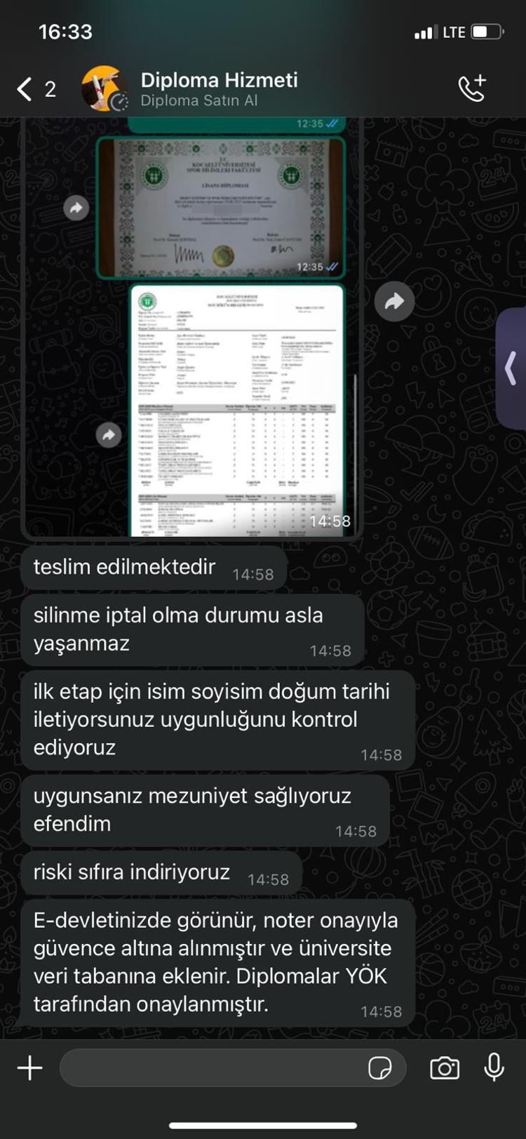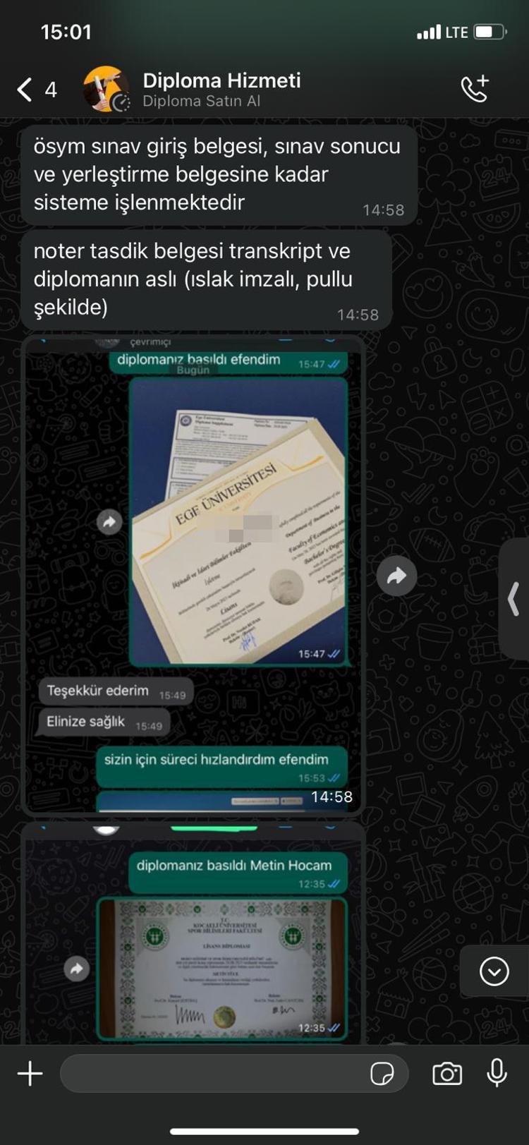 Öte yandan, benzer bir sayfanın kuruluşunu 2009 yılına kadar dayandırdığı, sahte diploma basımı işinde eski olduğunu belirterek fiyat listesi dahi yayınladığı görüldü. En son 2023 yılına dair yayınlanan fiyat listesinde, lisans diplomasının 10 bin lira, yüksek lisans diplomasının 12 bin lira, lise diplomasının 6 bin lira, ön lisans diplomasının 8 bin lira ve ilköğretim diplomasının 4 bin lira olarak yer aldığı görüldü.