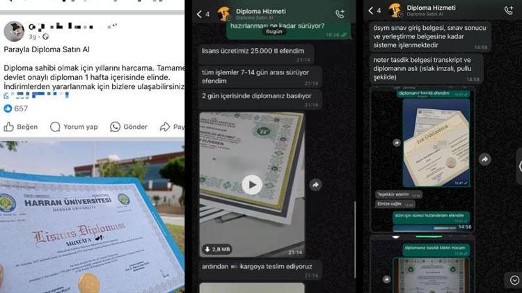 Sosyal medyada bazı hesaplardan; birçok farklı üniversitenin fakültelerine ait sahte diplomaların satışı yapılıyor. Sahte lisans diploması için 25 bin lira ücret talep edilirken, dolandırıcılar diplomanın e-Devlet sistemine de işlendiğini öne sürüyor. Gerçeğinden ayırt edilemeyecek kadar orijinal görünümdeki diplomaların görselleri de sosyal medya sayfalarında paylaşılarak alıcı bulmaya çalışılıyor. Avukat Deniz Özdal, "Sahte diplomanın edinilmesi, resmi belgede sahtecilik suçunu oluşturuyor. Resmi belgede sahtecilik suçunun basit haliyle 2 yılla 5 yıl arasında bir hapis cezası öngörülüyor. Fakat burada aslında mağdur olduğunu iddia edenler ne kadar mağdur? Bunlar da bir suç işleme kastıyla yola çıkıyor" dedi. E-Devlet gibi sistemlerde manipülasyonun kolay bir yol olmadığını ve dolandırıcıların güvenilirlik sağlamak adına vatandaşları yanılttığını belirten siber güvenlik uzmanı Osman Demircan ise, "Hiçbir şekilde de e-Devlet ya da benzeri bir sisteme kaydı yapılamıyor. Vatandaşlar da bu şekilde dolandırıldıktan sonra maalesef kolluk kuvvetlerine başvurmayı tercih etmiyorlar. Çünkü zaten kendileri de illegal bir iş yapıyorlar. Böylelikle dolandırıcıların yaptığı bu işler yanlarına maalesef kar kalıyor" dedi.