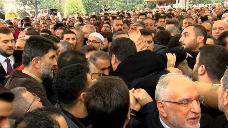Cenaze namazının öncesinde saflarda oluşan yoğunluktan dolayı kalabalığa uyarılar yapıldı. Kalabalıkta zaman zaman izdiham yaşandı. Öğle namazına müteakip kılınan cenaze namazı sonrasında Saadet Partisi Genel Başkanı Temel Karamollaoğlu bir konuşma yaptı.