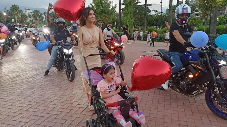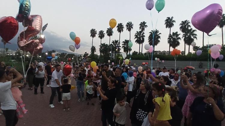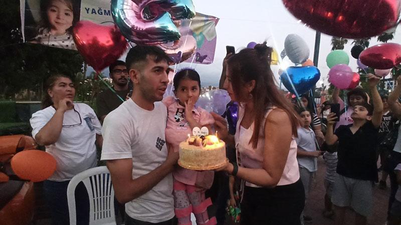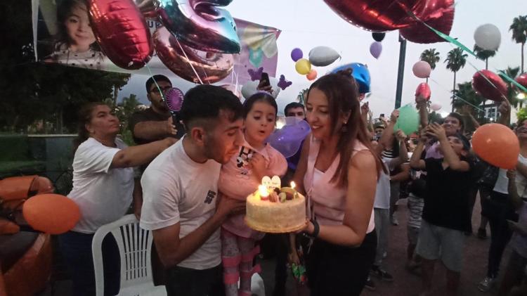 Hatay'ın İskenderun ilçesinde Ramazan Çolak'ın spina bifida (ayrık omurga) hastası kızı Yağmur Çolak’ın (5) doğum günü dolayısıyla yaptığı çağrı üzerine toplanan yüzlerce kişi balon uçurup, pasta kesti.