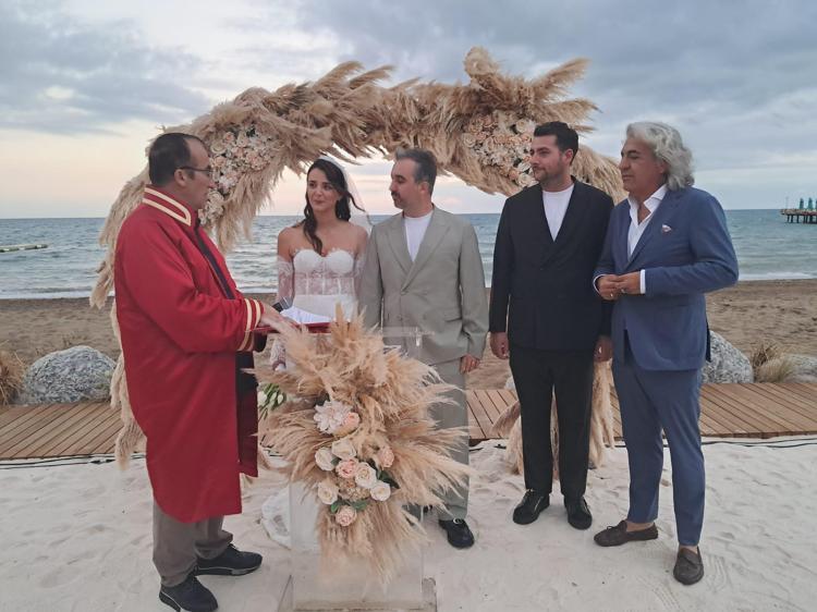 Profesyonel Futbol menajeri Alp Tontu ile Cansu Yıldırım açık havadaki düğün töreni ile dünya evine girdi.