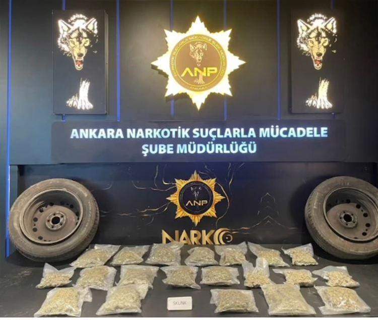 Bagajda yer alan 2 stepne lastik içerisine zulalanmış halde 5,5 kilo esrar ele geçirildi. Gözaltına alınan otomobil sürücüsü A.K., emniyetteki işlemlerinin ardından sevk edildiği hakimlikçe tutuklandı.