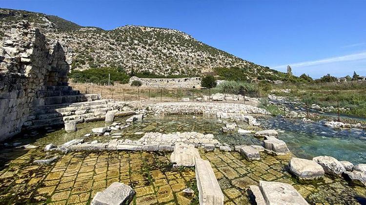 Antik kentte bulunan kilisenin temelleri ve sütunlu cadde ise kentin ortasından geçen Limyros Nehri'nin altında kalıyor. Doğal havuz işlevi gören nehir, kenti gezmeye gelenler tarafından serinlemek için tercih ediliyor.